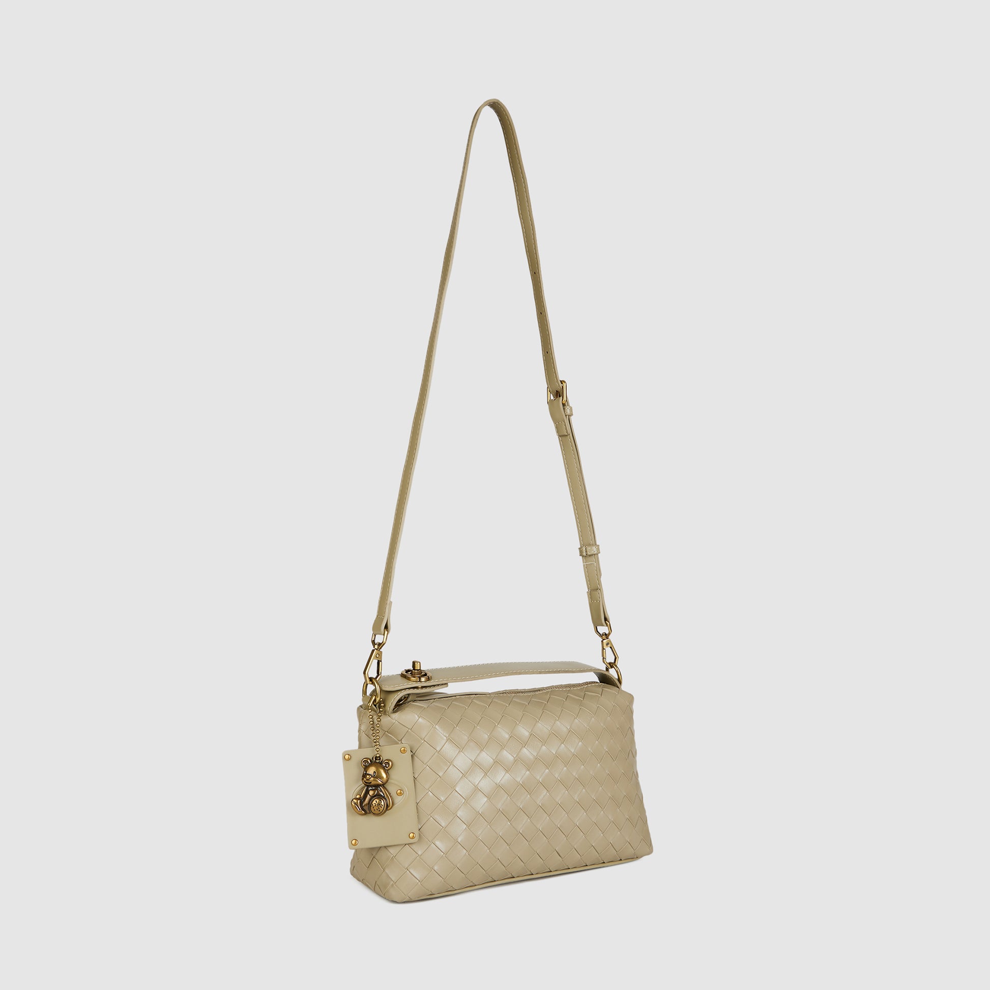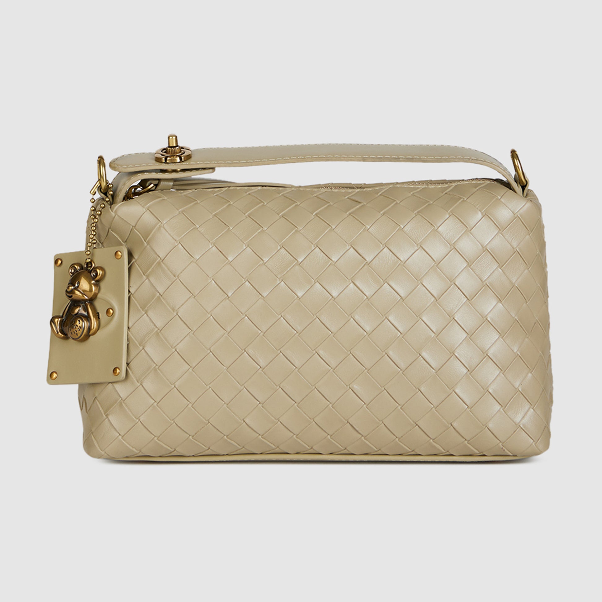 Sophisticated and timeless, our Elena handbag is designed with functionality and style in mind. Crafted from luxurious textured beige PU leather, it features a striking braided PU leather chain accent for a contemporary look. The gold-tone hardware, including a decorative clasp detail, adds a polished finish. This bag is equipped with a secure zip-top closure and an adjustable strap, allowing you to wear it comfortably as a handbag or crossbody bag. Perfect for both casual and formal occasions, it combines elegance with practicality.