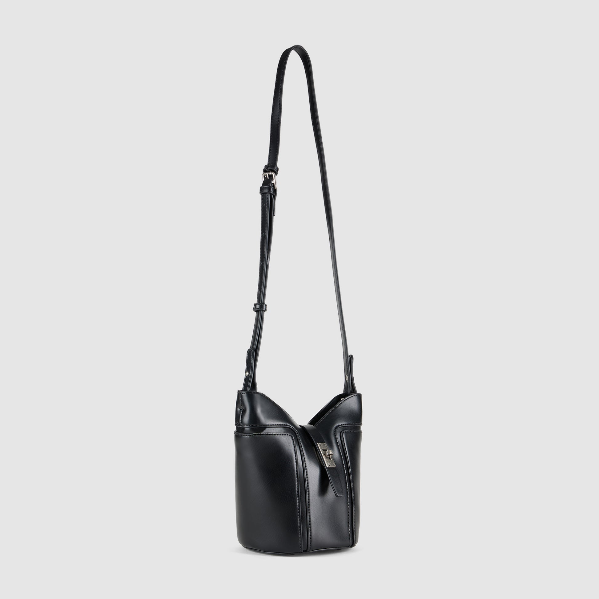 Our Abby bucket bag combines classic style with modern design elements, making it a perfect accessory for casual or dressy occasions. Its made with high quality PU leather in black and flaunts a smooth finish. Featuring a structured silhouette and a secure twist-lock front closure A single top handle allows for easy carrying, while its compact size is ideal for everyday essentials.