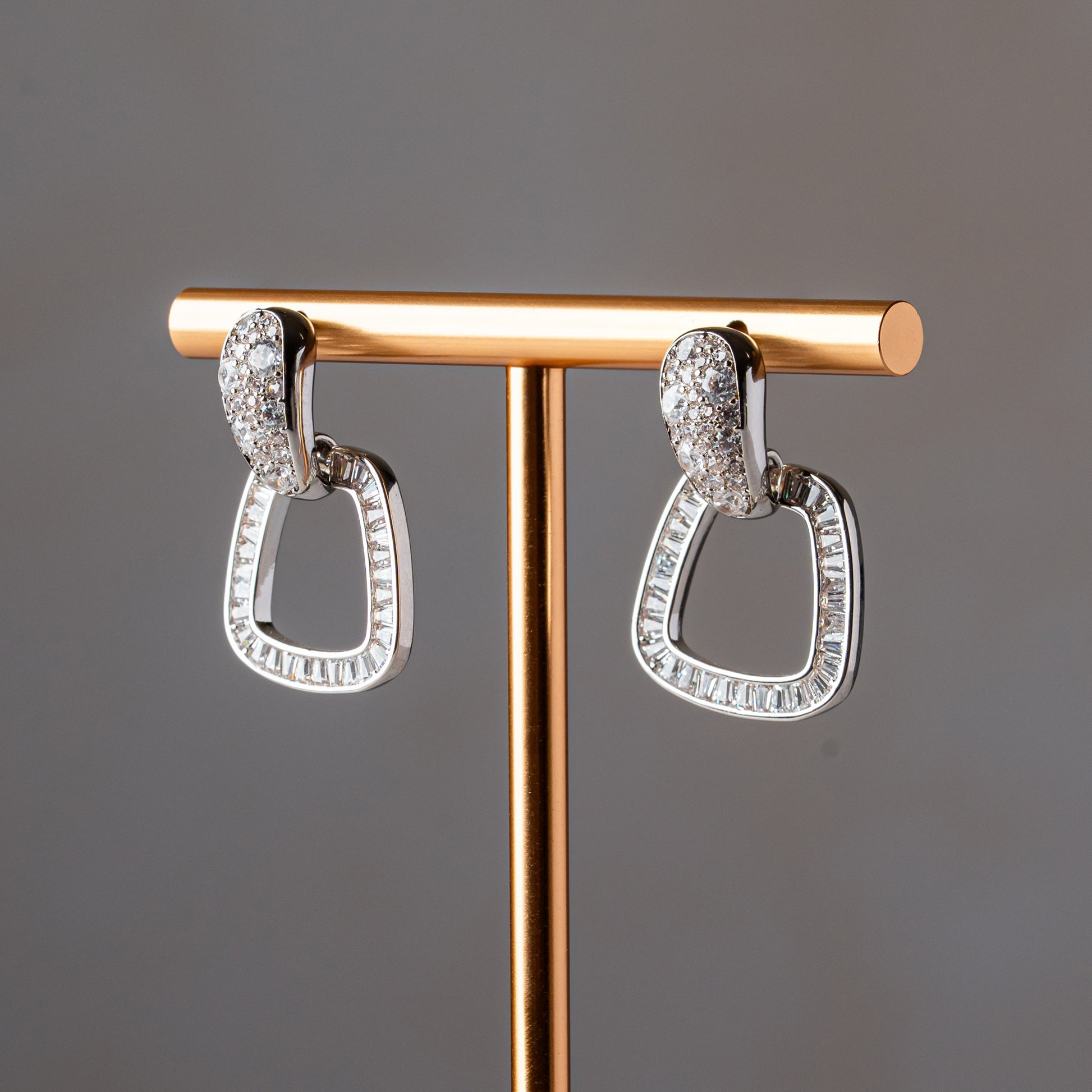 These architectural earrings blend a sleek open shape with a crystal-encrusted edge. Sparkling but structured, perfect for the modern minimalist.