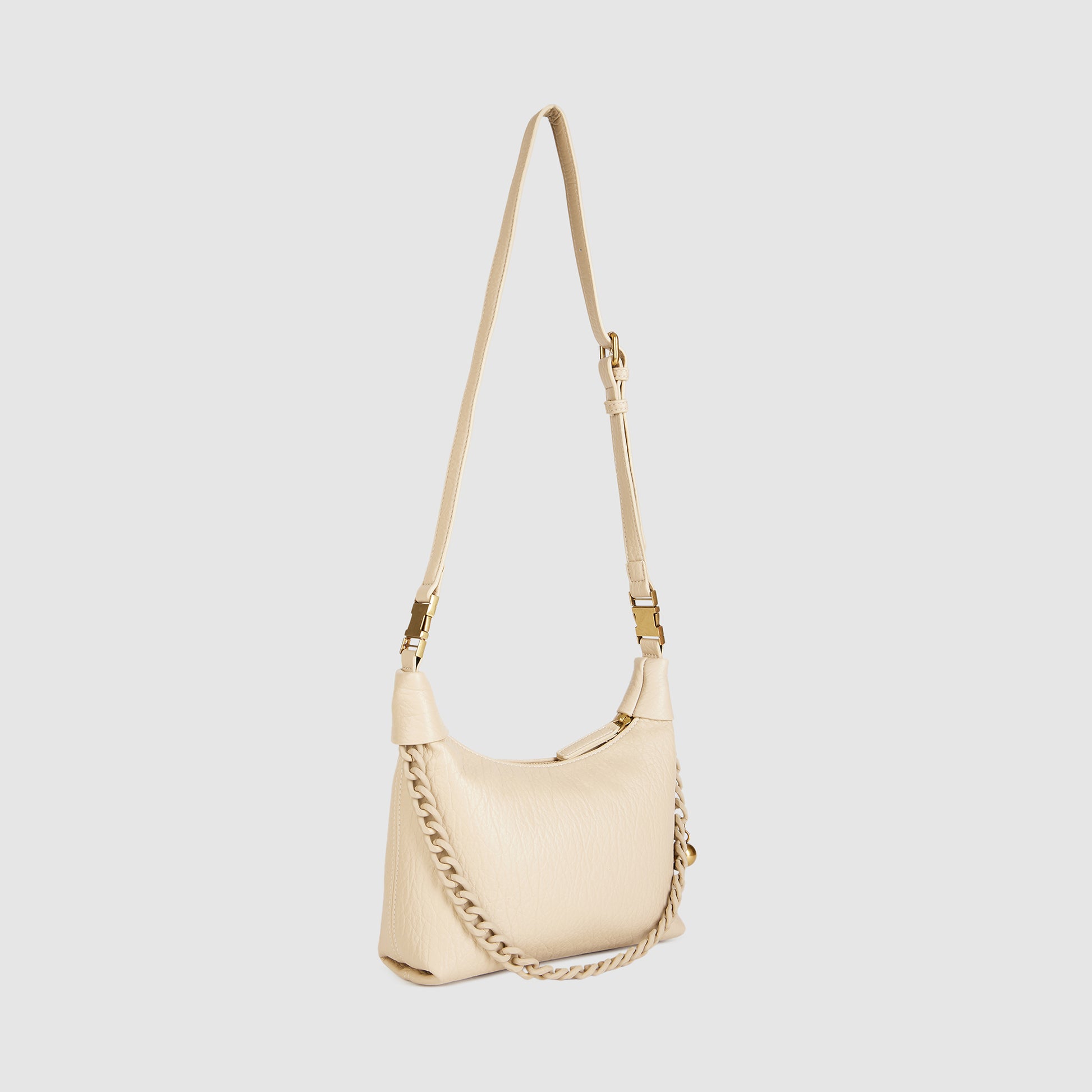 Our Luxe Hobo bag is crafted from premium cream textured PU leather, exuding effortless elegance. It features a striking same tone chain detail on the front, adding a touch of glamour to its minimalist design. The adjustable PU leather shoulder strap allows for adjustable length, ensuring comfort and adaptability for various occasions. Whether you’re running errands or heading to a special event, this bag seamlessly combines style and functionality wether you want to carry it as a wristlet, a shoulder bag or a crossbody!