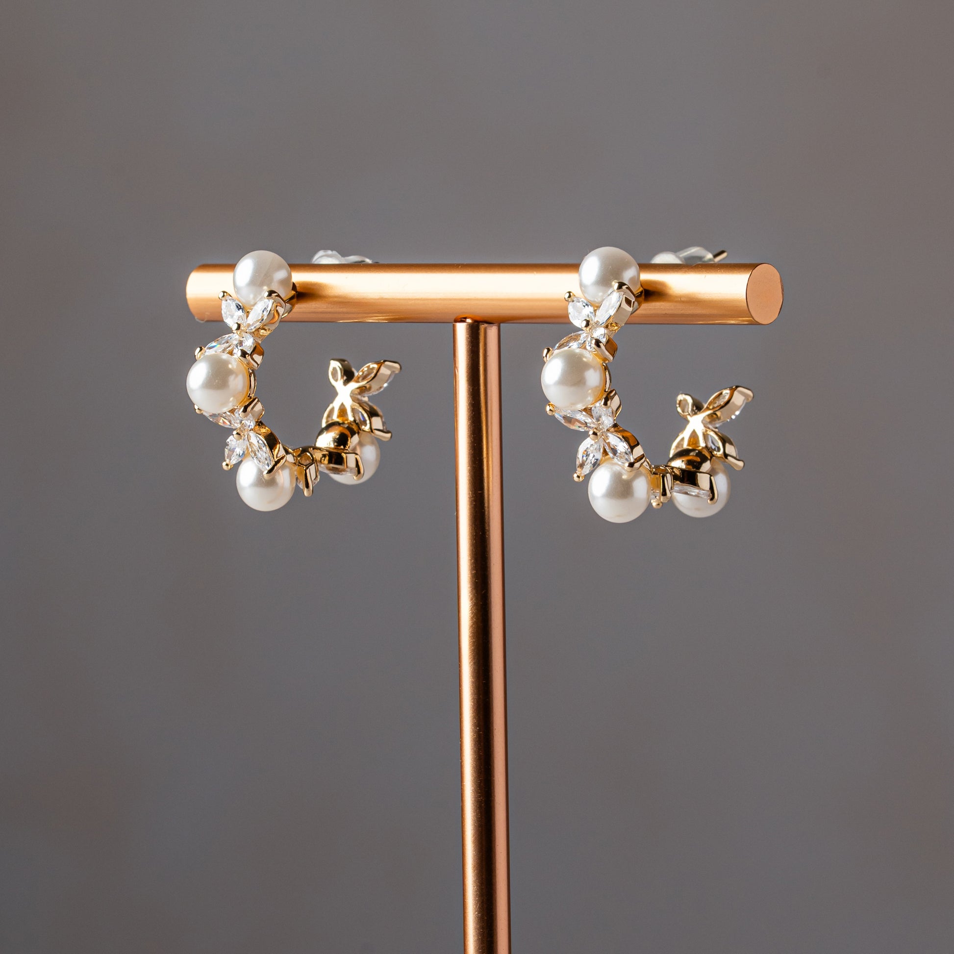 Adorned with delicate pearls and crystal blossoms, these hoops exude femininity and charm. Perfect for weddings, brunches, or adding a romantic touch to your everyday look.