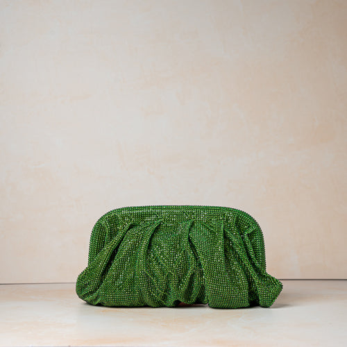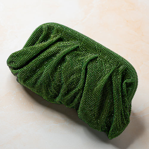 Dazzling yet refined, the Black Ruched Evening Bag is crafted to make an elegant statement at special occasions. Designed with a soft ruched silhouette, the exterior is embellished with shimmering crystal detailing that catches the light beautifully, creating a glamorous yet tasteful finish.