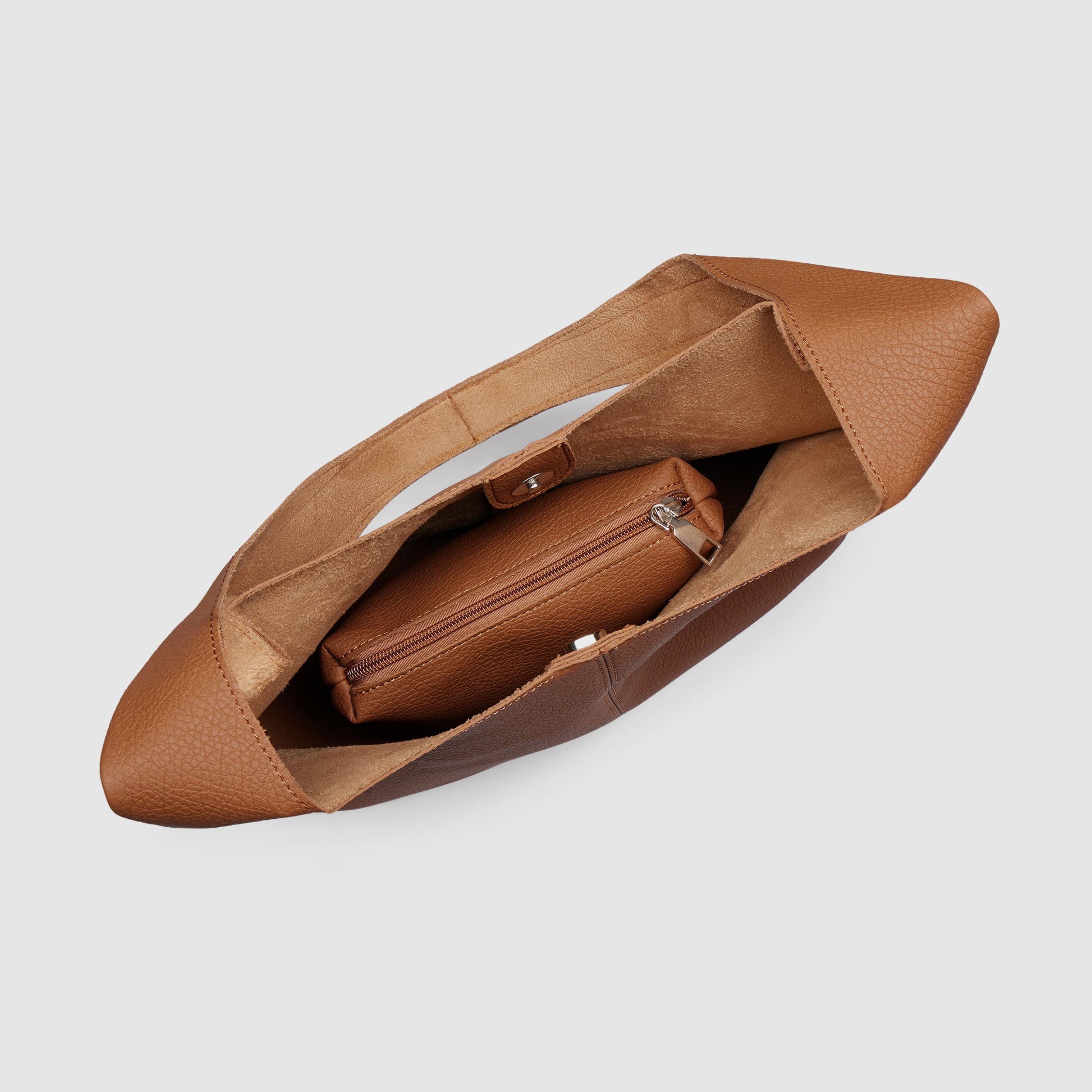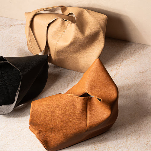 Our Gia slouch shoulder bag combines minimalist style with effortless elegance. Crafted from soft, pebbled faux leather, it offers a streamlined, unstructured silhouette with a single wide shoulder strap for comfortable wear. The open-top design provides easy access to essentials, while the neutral beige hue makes it a versatile accessory that complements any wardrobe. Perfect for casual outings or adding a refined touch to everyday looks.