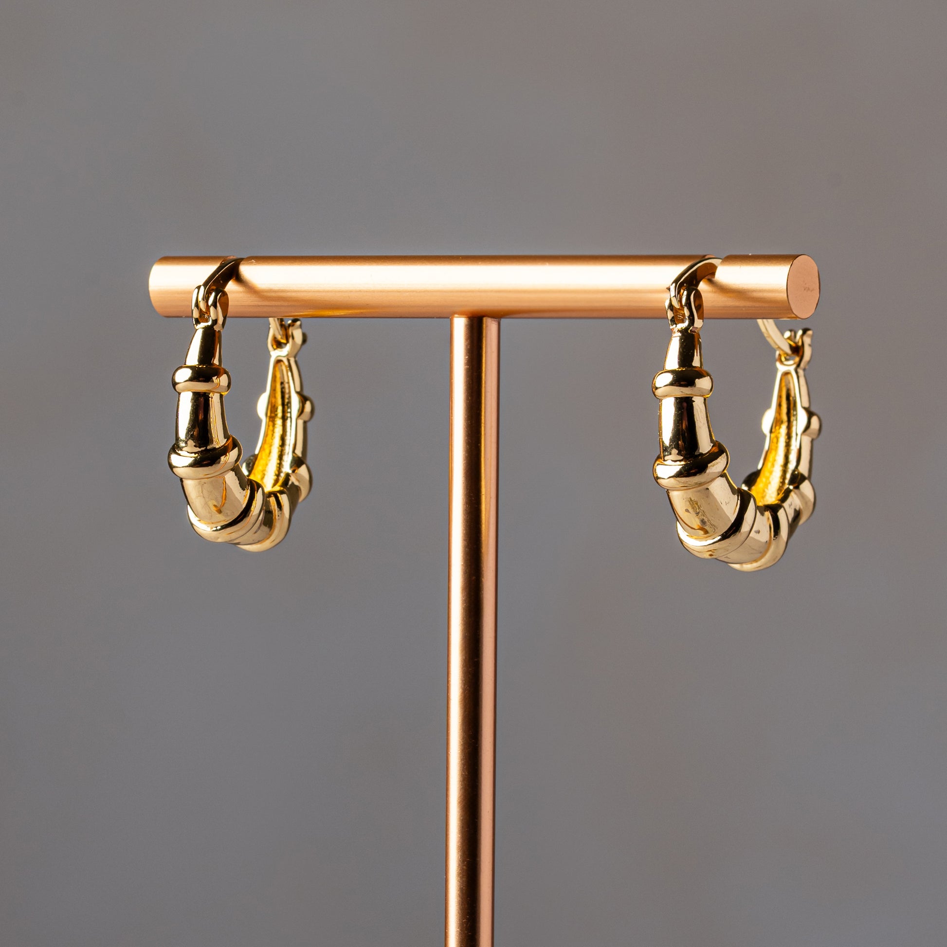 A nature-inspired twist on a classic shape, these gold hoops mimic bamboo segments for an organic, sculptural appeal. Understated with a touch of texture.