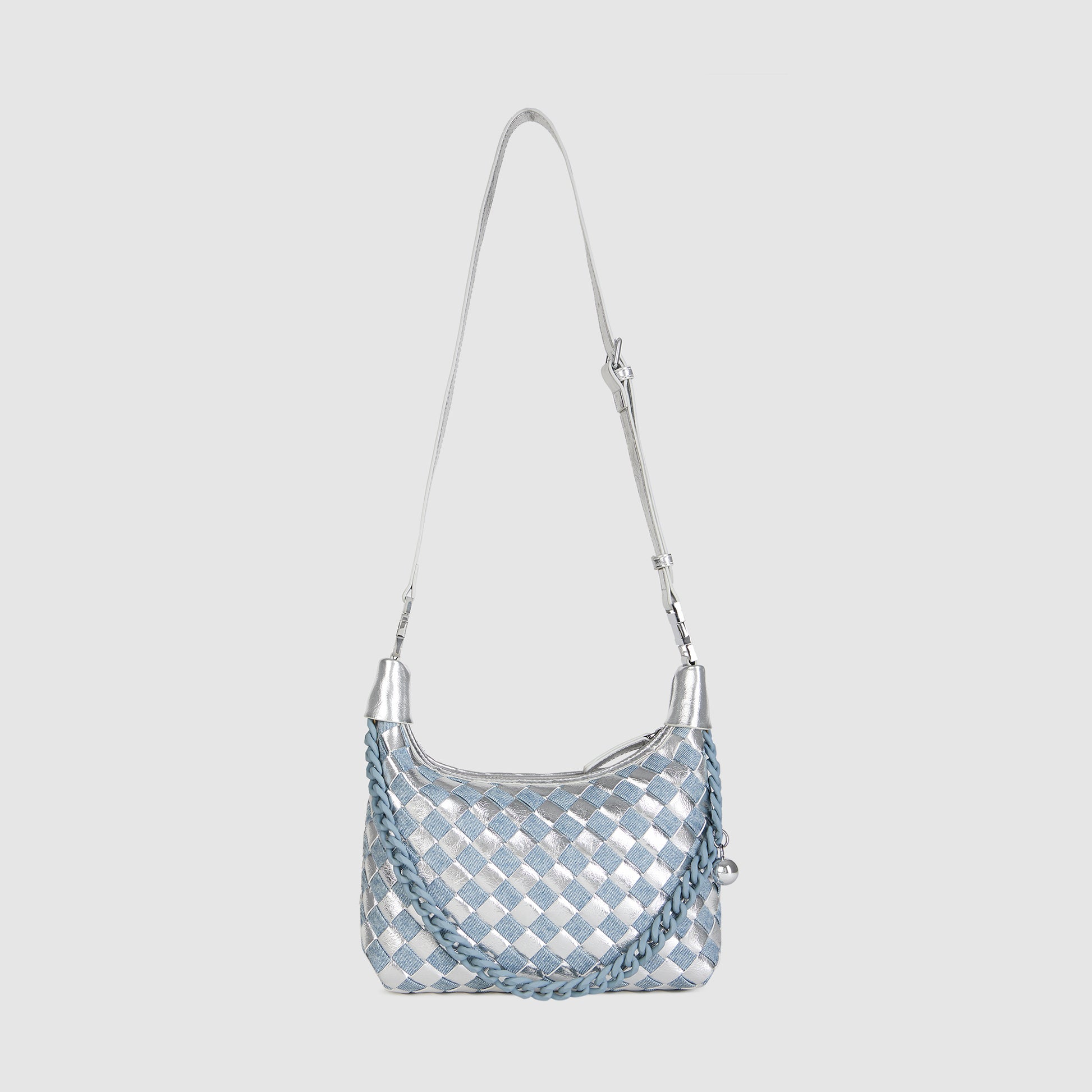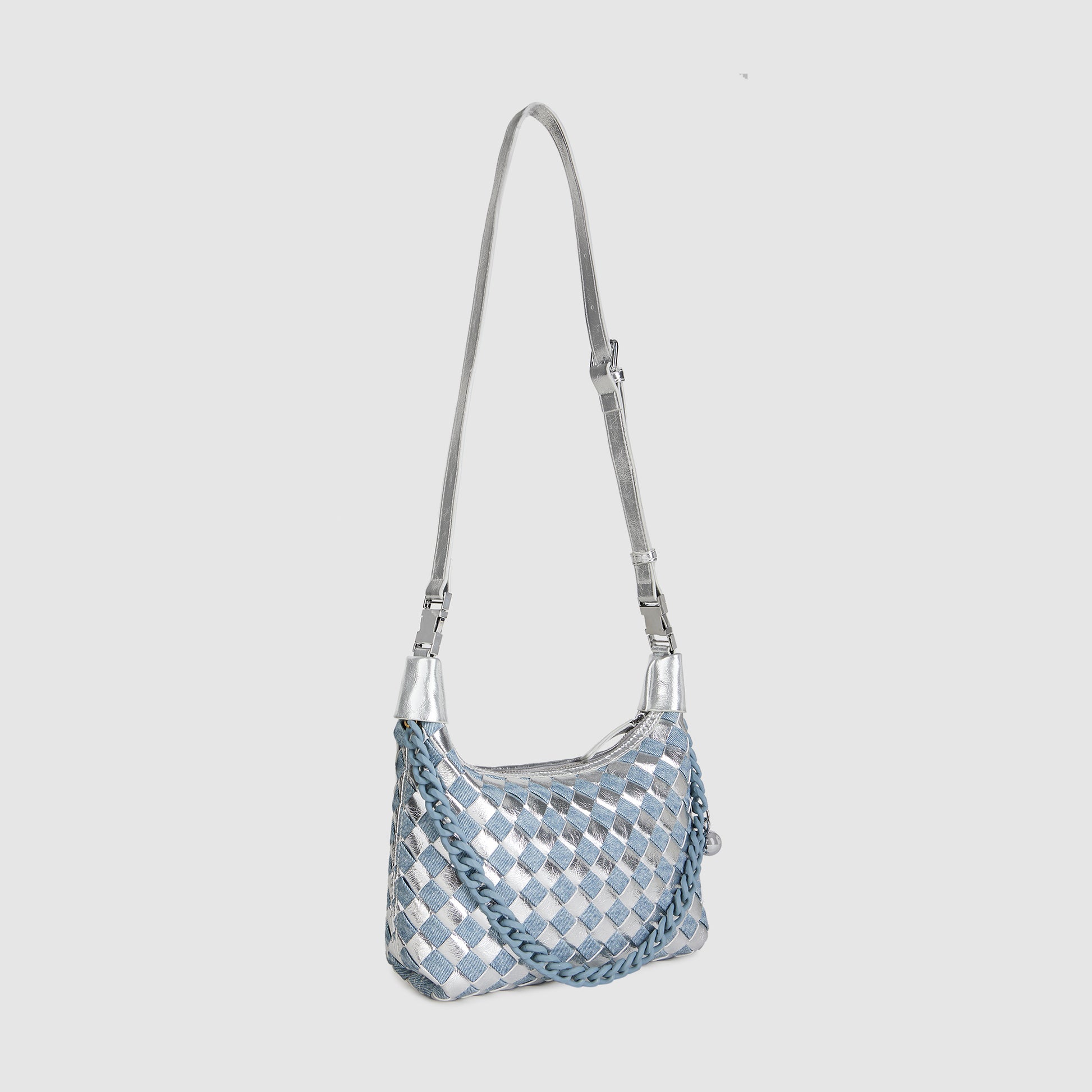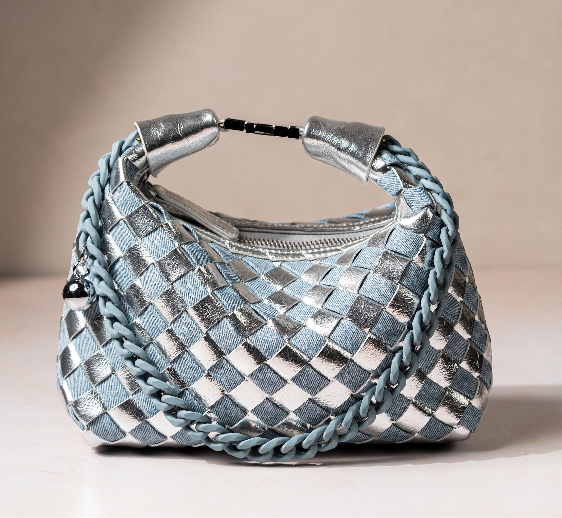 Our Luxe Hobo bag is crafted from premium denim-silver textured PU leather, exuding effortless elegance. It features a striking denim tone chain detail on the front, adding a touch of glamour to its minimalist design. The adjustable PU leather shoulder strap allows for adjustable length, ensuring comfort and adaptability for various occasions. Whether you’re running errands or heading to a special event, this bag seamlessly combines style and functionality wether you want to carry it as a wristlet, a shoulder bag or a crossbody!