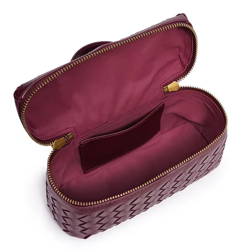 Sophisticated and impeccably structured, the Leona Woven Vanity Box Bag is designed for women who appreciate refined craftsmanship with everyday functionality. Comes with a crossbody sling as well for a functional design .