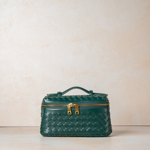 Crafted in premium faux leather with an elegant woven texture, this bag features a rich emerald green finish that adds a luxurious pop of colour to any outfit.