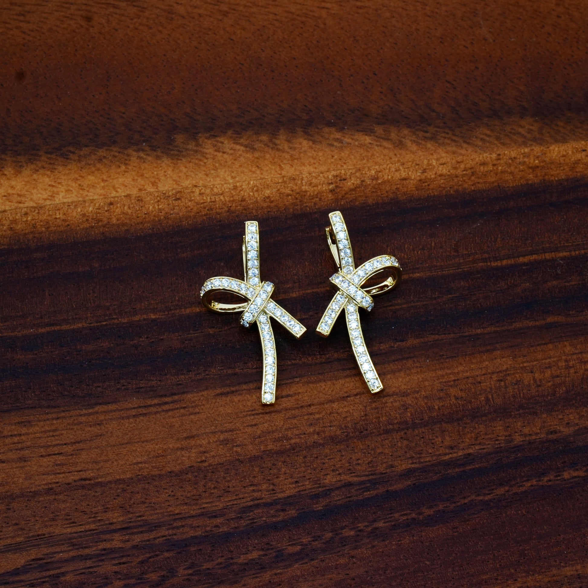 Soft meets sparkle in our Elegant Ribbon Bow Drop Earrings, designed to bring a delicate, feminine touch to your jewellery collection. The ribbon-inspired shape, encrusted with shimmering zirconia stones, makes these earrings the perfect pick for both romantic evenings and chic daytime looks. Available in gold and silver for effortless styling.