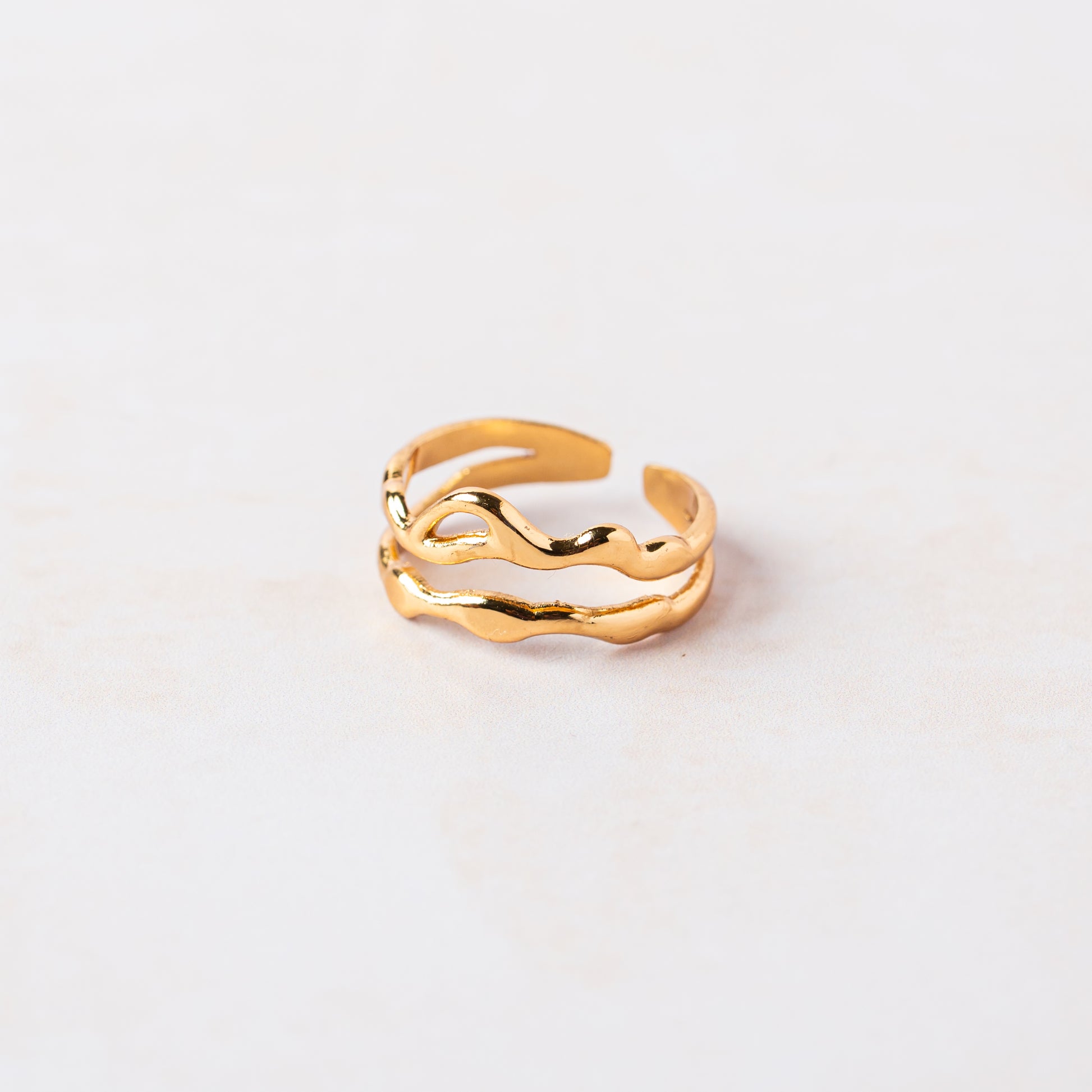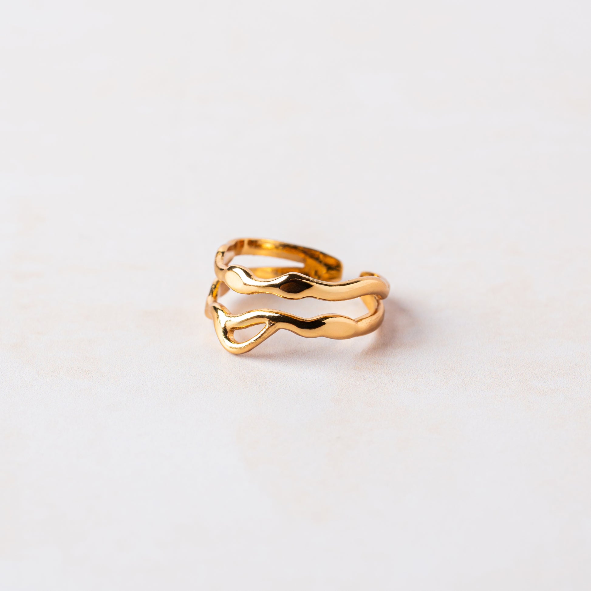 Two wavy bands intertwine to create this fluid, abstract design. A modern piece that feels effortless and artsy.
