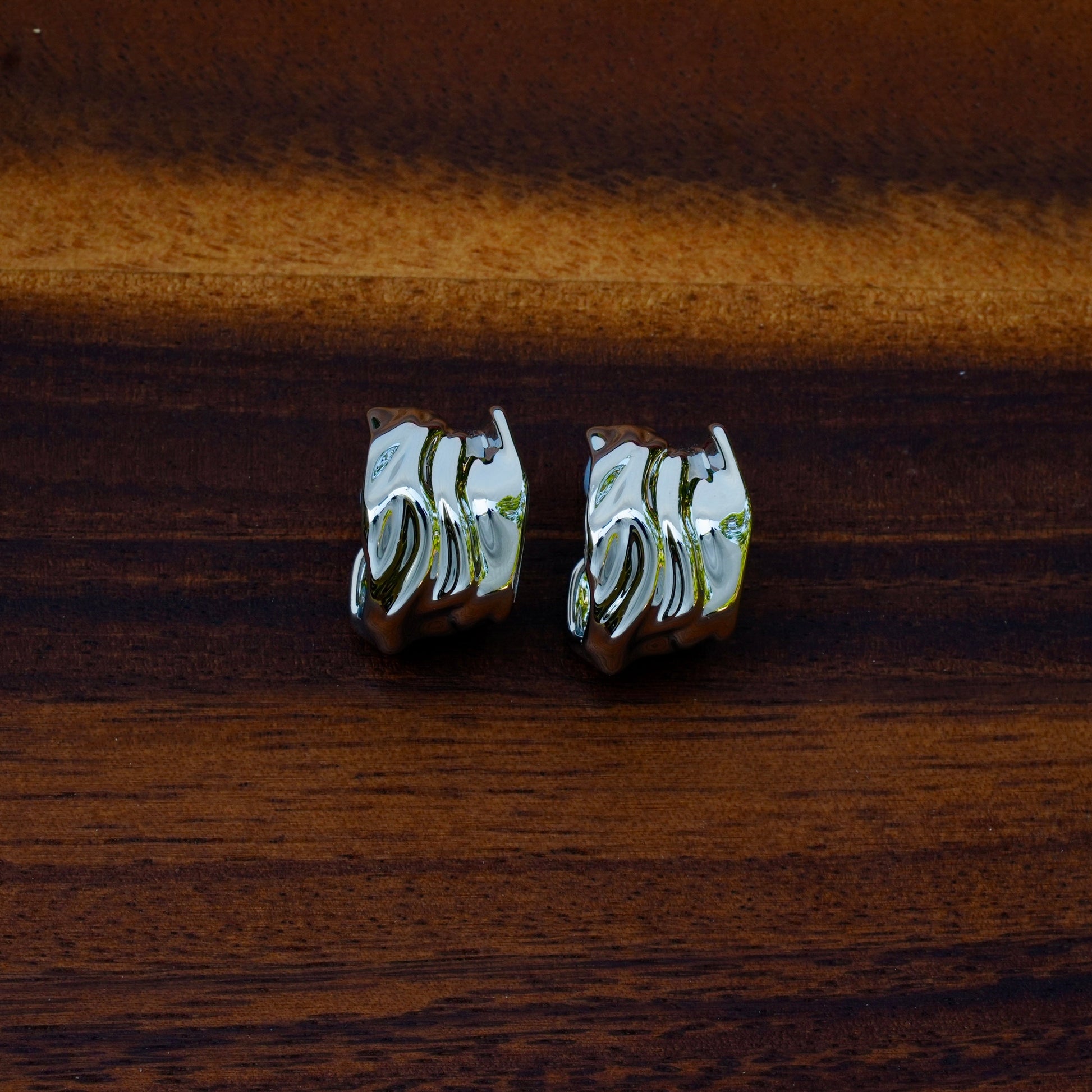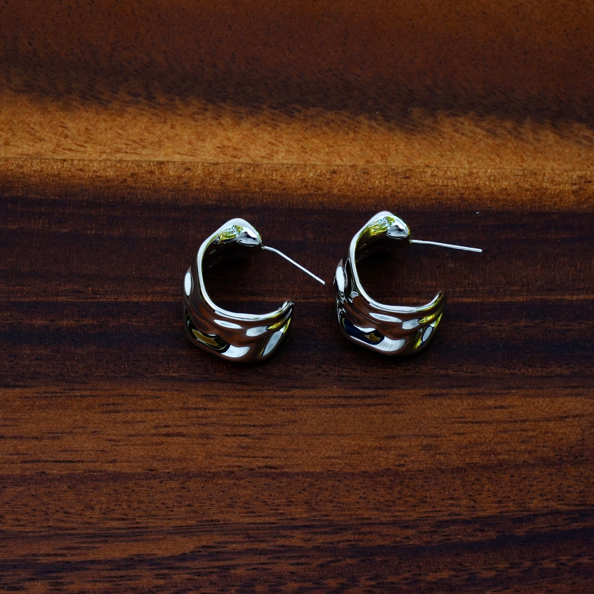Minimalist meets modern in our Sculptured Mini Hoops. The unique fluid metal design, available in both gold and silver, creates a sleek, futuristic aesthetic. These small yet impactful studs are a must-have for lovers of contemporary jewelry.